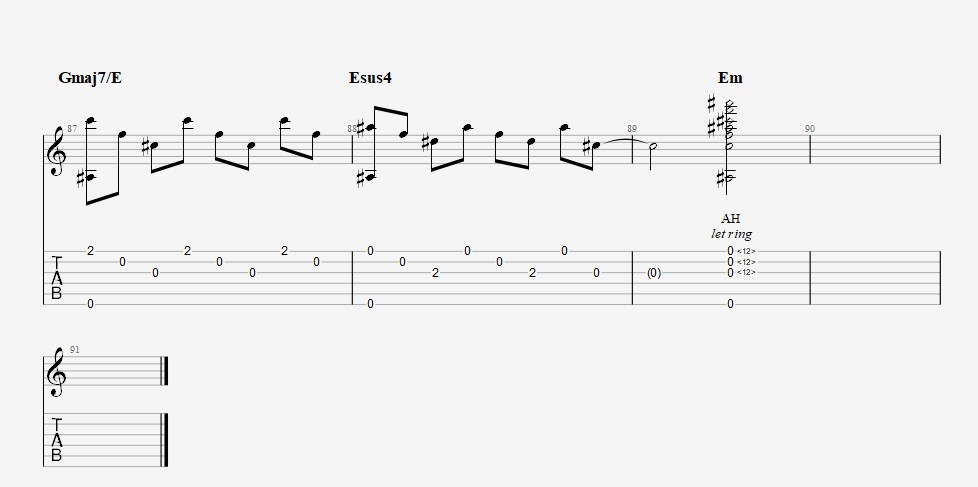 Apprenez l’intro tranquillement, tous les accords seront réutilisés dans la suite du morceau.